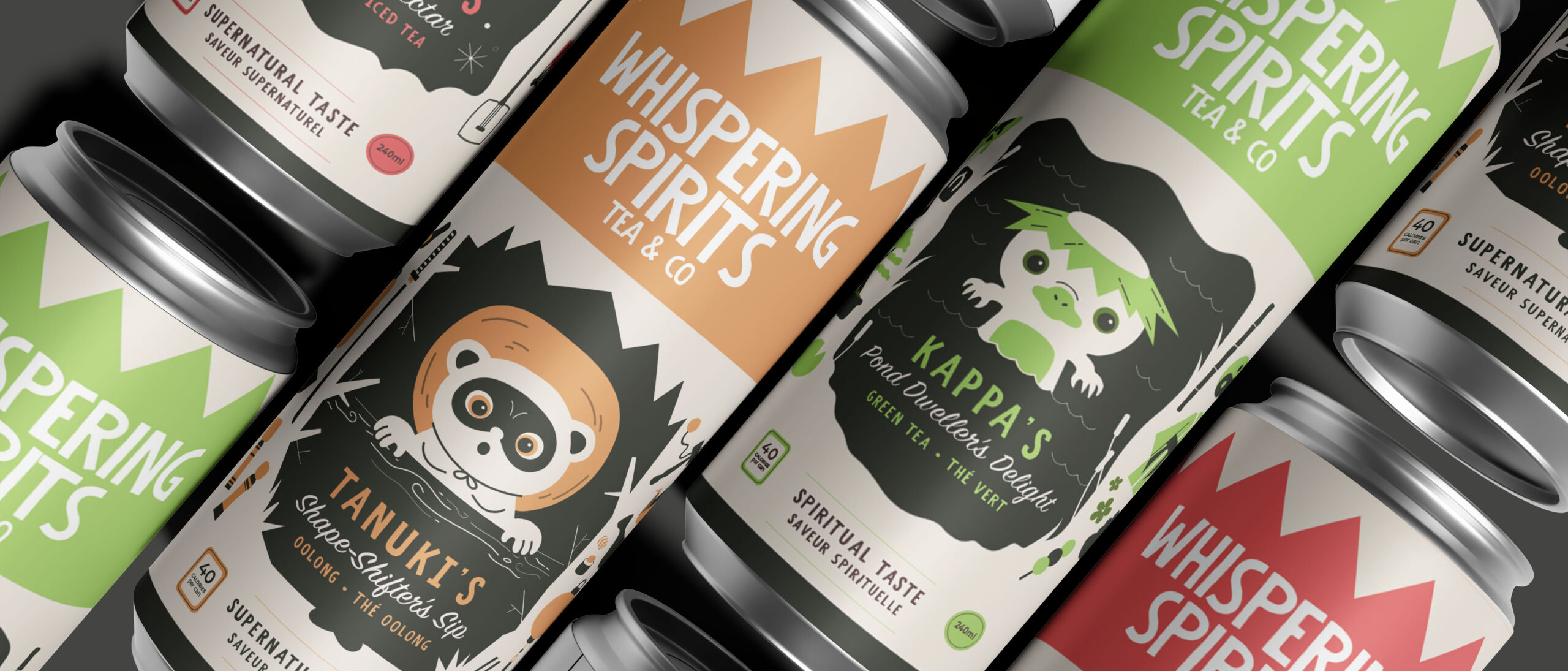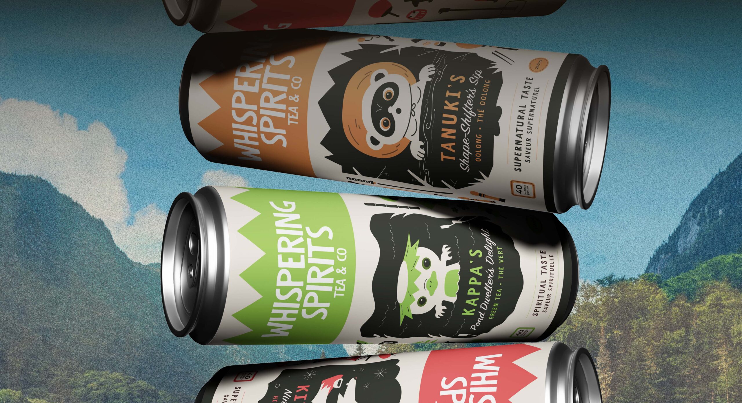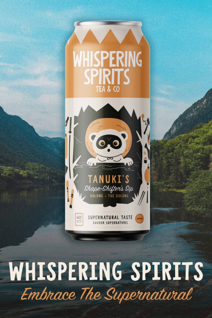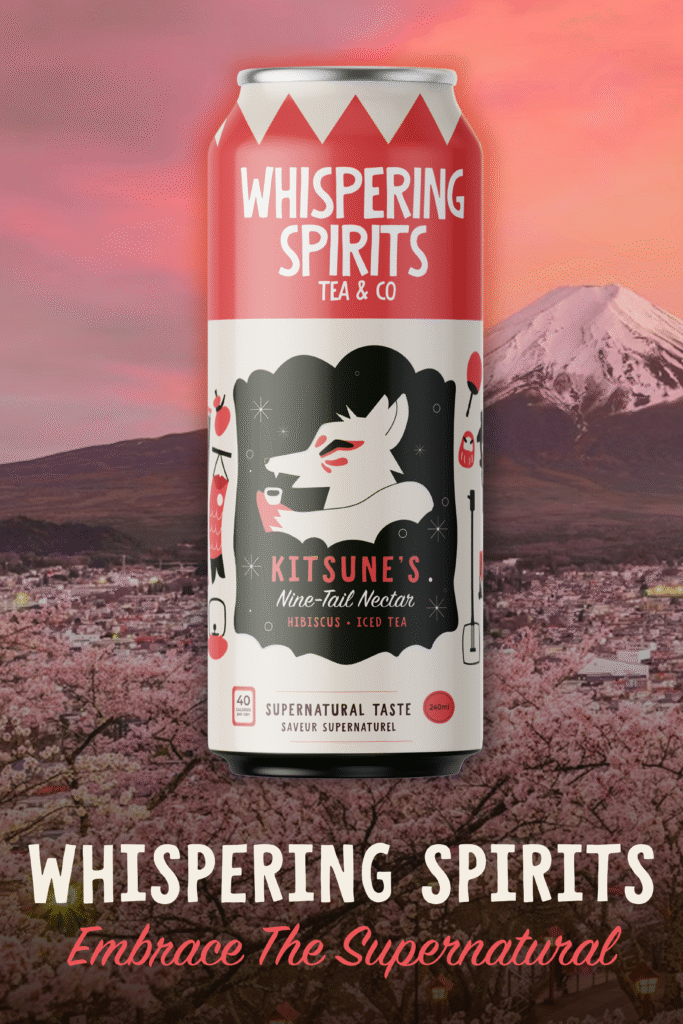 The tea cans feature three distinct flavors, each represented by a character inspired by cultural folklore. The Kitsune, Kappa, and Tanuki were chosen because of their significance in current media such as anime and telovision. The illustrations surrounding each character showcase symbolic items from their stories, turning the packaging itself into a visual narrative. By weaving folklore into the design, the cans celebrate cultural storytelling and highlight the origins and meaning behind these traditional tales.