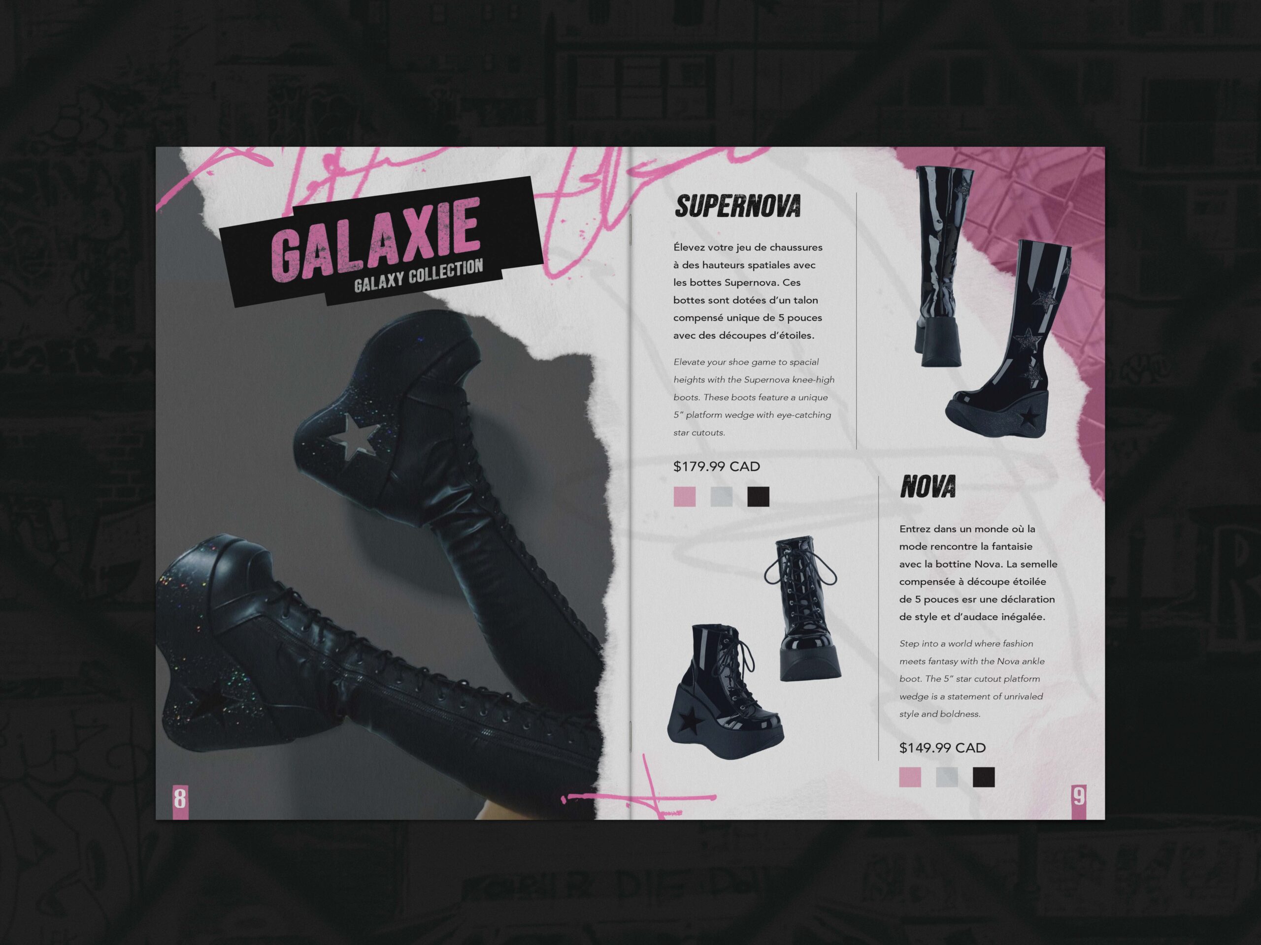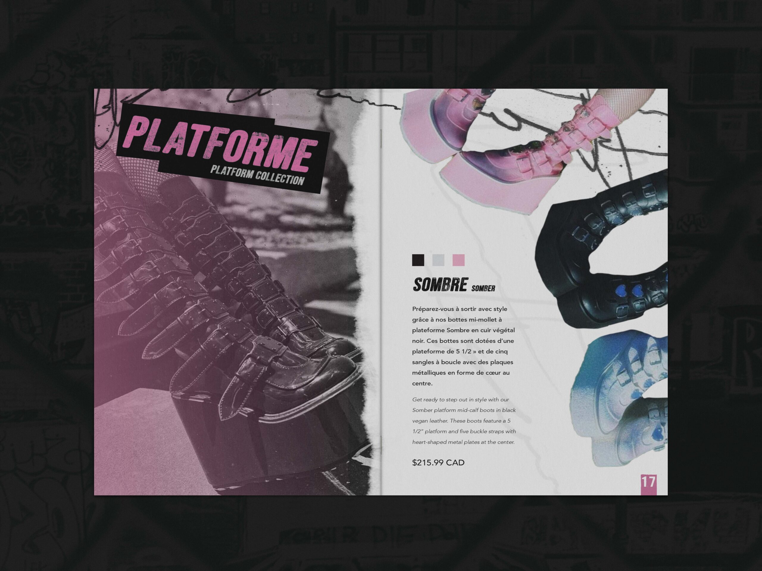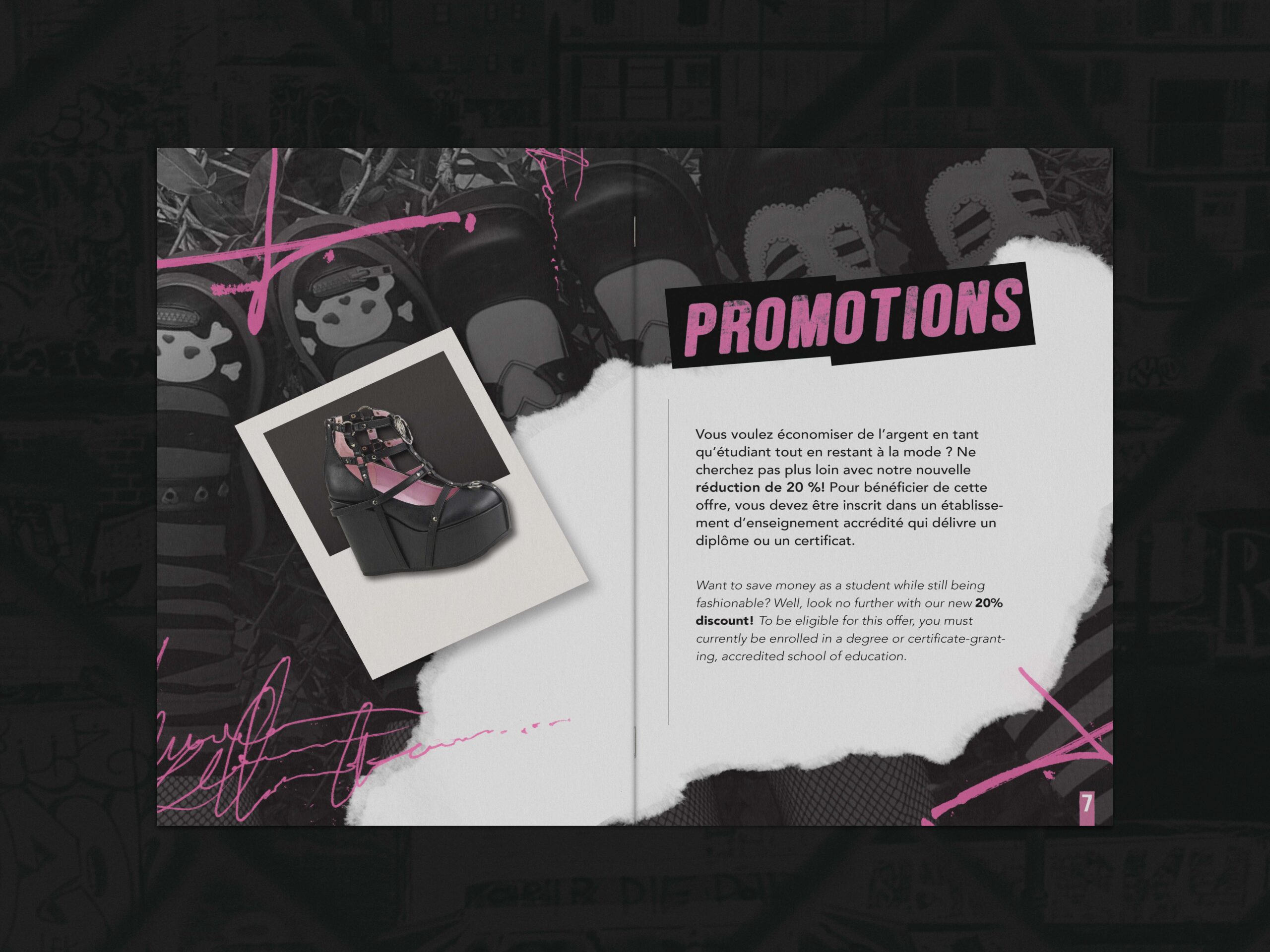 For this third semester project, the objective was to take a preexisting brand and reimagine it through a completely new visual identity. I chose to base my project on Demonia, an alternative clothing brand best known for its bold, unconventional boot and shoe designs. Demonia’s strong presence within gothic and alternative fashion made it an ideal foundation for exploring how an established brand can be transformed while still honoring its core essence.